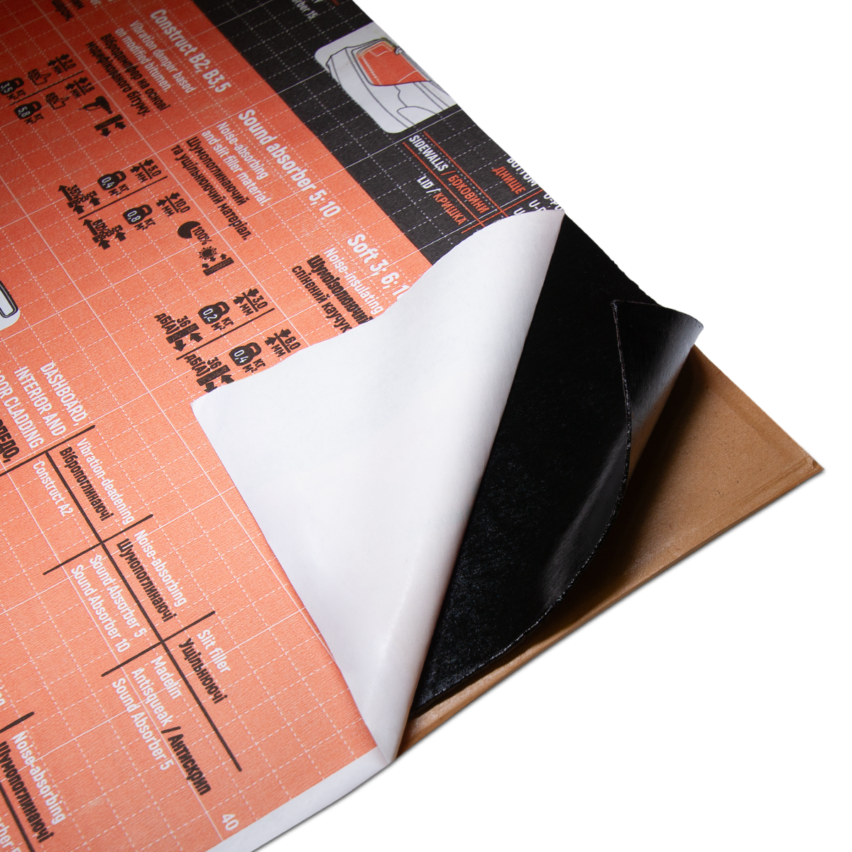 ULTIMATE СONSTRUCT B2 відкриває нові горизонти в області вібропоглинаючих матеріалів, завдяки своєму унікальному складу на основі термоотверждаємого бітуму. Інтегровані пластифікатори дозволяють здійснювати монтаж СONSTRUCT B2, прогріваючи його лише до температур 30-40°C. Такий підхід забезпечує, що клейова основа матеріалу надійно фіксується на металевих поверхнях. Якщо ж прогріти вже змонтований СONSTRUCT B2 до 60-70°C, його адгезія до металу значно зростає, що сприяє підвищенню його жорсткості після охолодження.