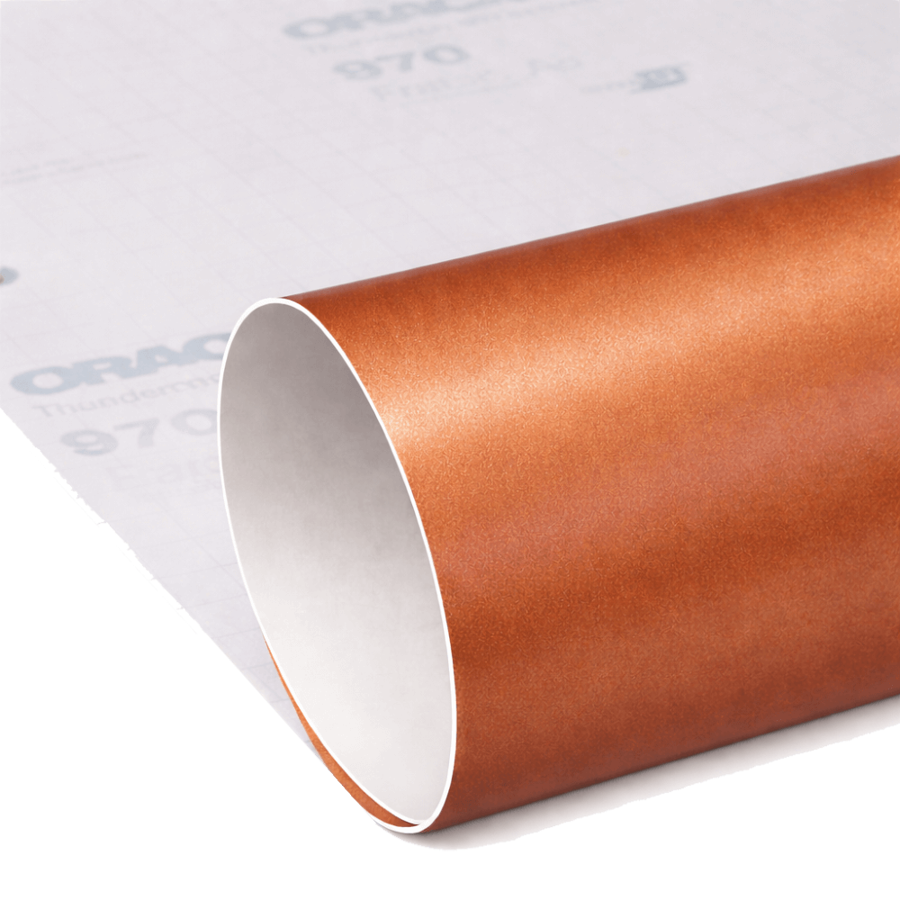 Плівка матова Orafol Oracal 970-944 Red Gold Metallic Matt — високоякісна лита ПВХ-плівка з ефектним червоно-золотим металізованим відтінком, виробництва Німеччини. Призначена для довгострокового зовнішнього використання на транспорті, добре адаптується до складних, вигнутих поверхонь, заклепок і зварних швів. Підходить для повної та часткової оклейки автомобілів.