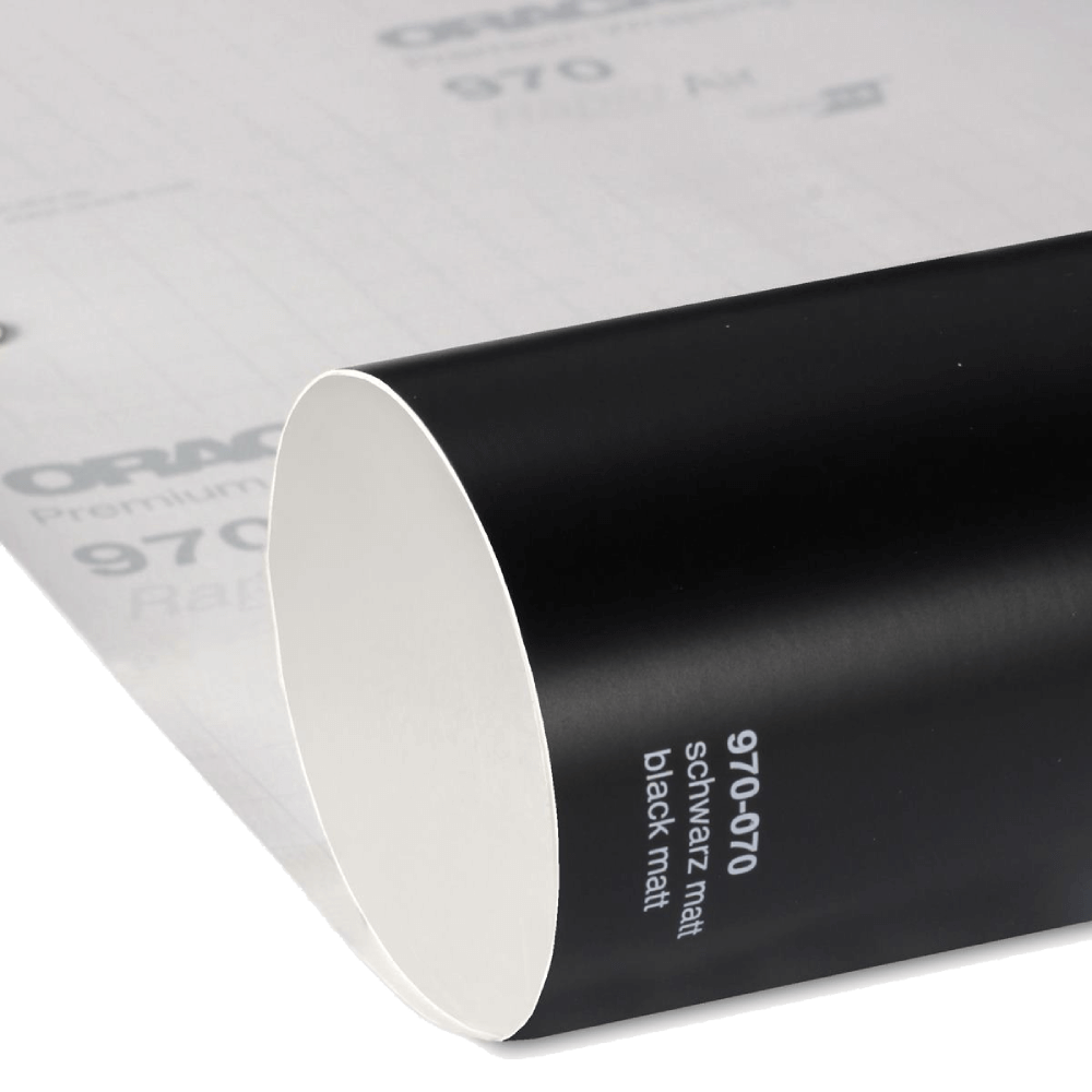 Високоякісна багатошарова лита ПВХ-плівка Oracal 970-070 Black Matt у чорному матовому кольорі товщиною 110 мкм розроблена для професійного обклеювання транспортних засобів без потреби у подальшому ламінуванні. Матеріал німецького виробництва призначений для довгострокового зовнішнього застосування, зокрема в екстремальних умовах та на спортивних автомобілях. Плівка відзначається високою еластичністю, стабільністю розмірів і міцністю, що дозволяє якісно наносити її на нерівні та увігнуті елементи, а також на поверхні із заклепками та зварювальними швами. Чорна матова поверхня є класичним та універсальним рішенням, яке підходить як для повної, так і для часткової обклейки автомобіля, зокрема для оформлення стійок дверей, що часто використовується автовиробниками.